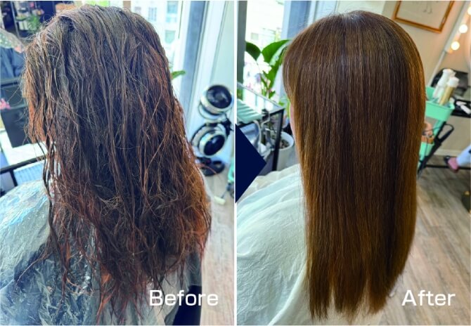 - 毛先のパサつきも改善され、髪がまとまりやすくなるのでお客様が家でセットする際に時短効果にも繋がる。