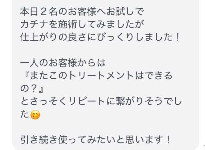 本日2名のお客様へお試しでカチナを施術してみましたが仕上がりの良さにびっくりしました!